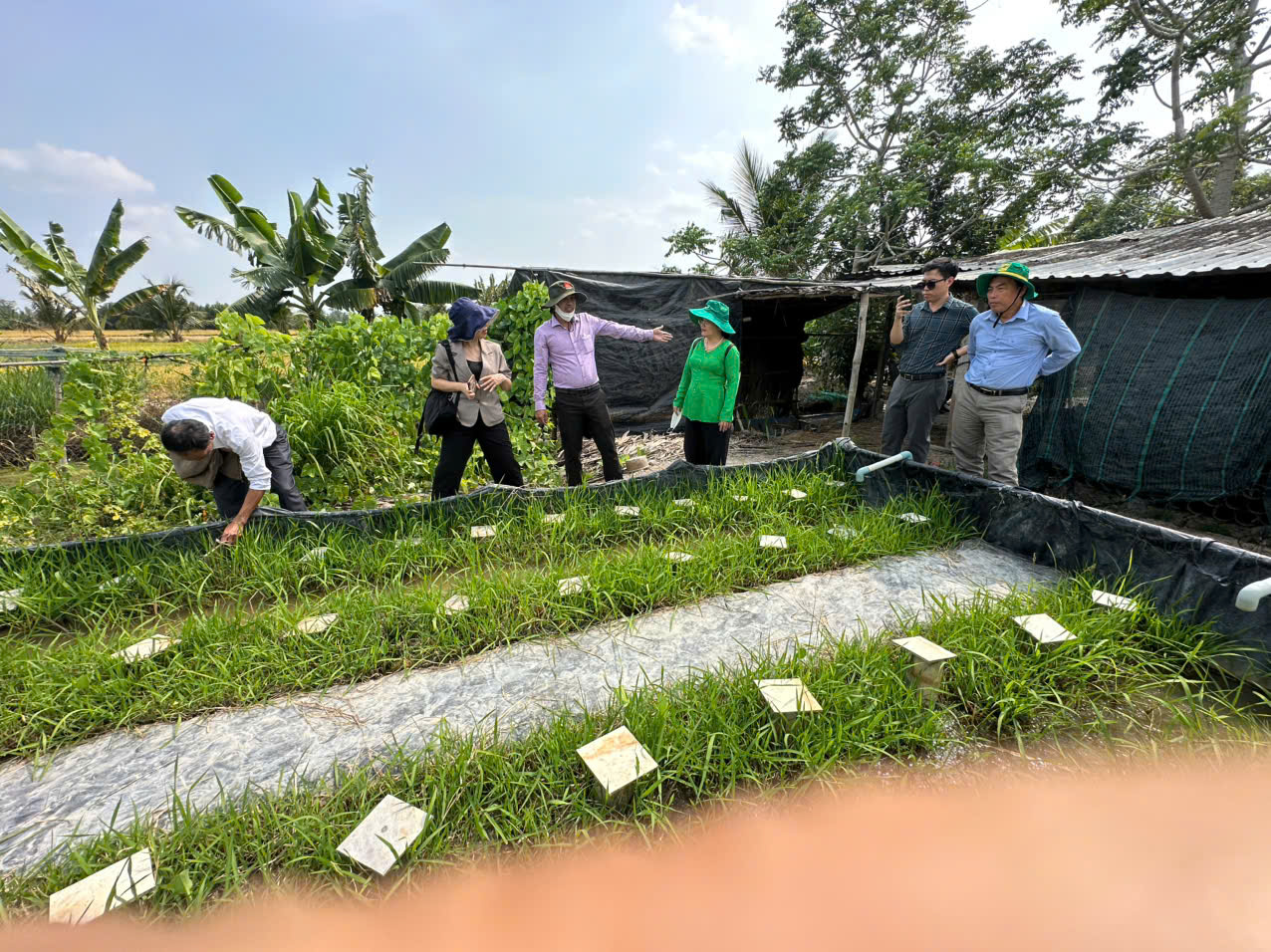 Đoàn cũng khảo sát mô hình của hộ ông Bùi Tiền Giang (xã Vĩnh Viễn) và mô hình sản xuất kết hợp của ông Huỳnh Văn Tấn (xã Vĩnh Thuận Đông), qua đó ghi nhận nhiều cách làm sáng tạo trong tận dụng phụ phẩm nông nghiệp, góp phần nâng cao thu nhập và bảo vệ môi trường.