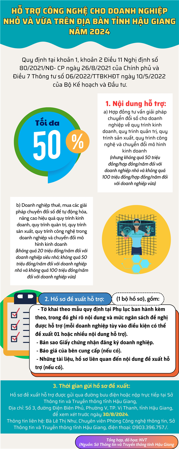 Infographic: Hỗ trợ công nghệ cho doanh nghiệp nhỏ và vừa trên địa bàn tỉnh năm 2024