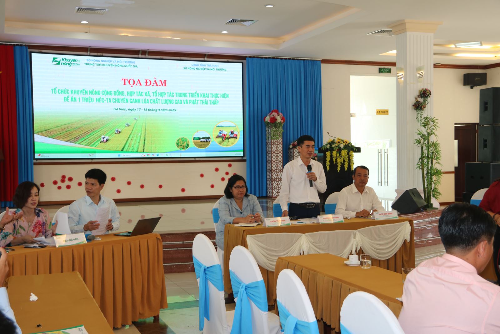 Ngày 18/4/2025, Trung tâm Khuyến nông Quốc gia phối hợp Sở Nông nghiệp và Môi trường tỉnh Trà Vinh tổ chức Tọa đàm với chủ đề “Tổ chức khuyến nông cộng đồng, hợp tác xã, tổ hợp tác trong triển khai thực hiện Đề án 1 triệu héc-ta chuyên canh lúa chất lượng cao và phát thải thấp”.
