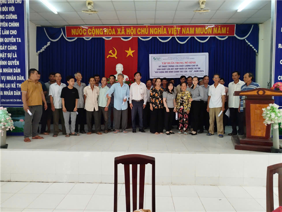 Hậu Giang: tập huấn kỹ thuật sản xuất lúa chất lượng cao và sản xuất lúa kết hợp nuôi cá thuộc dự án Khuyến nông Quốc gia “Xây dựng mô hình canh tác lúa - cá”, năm 2024.