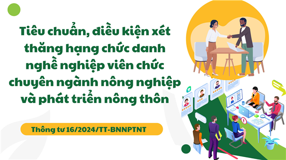 Ngày 21/11/2024, Bộ trưởng Bộ NN&PTNT ban hành Thông tư 16/2024/TT-BNNPTNT quy định tiêu chuẩn, điều kiện xét thăng hạng chức danh nghề nghiệp viên chức chuyên ngành nông nghiệp và phát triển nông thôn.